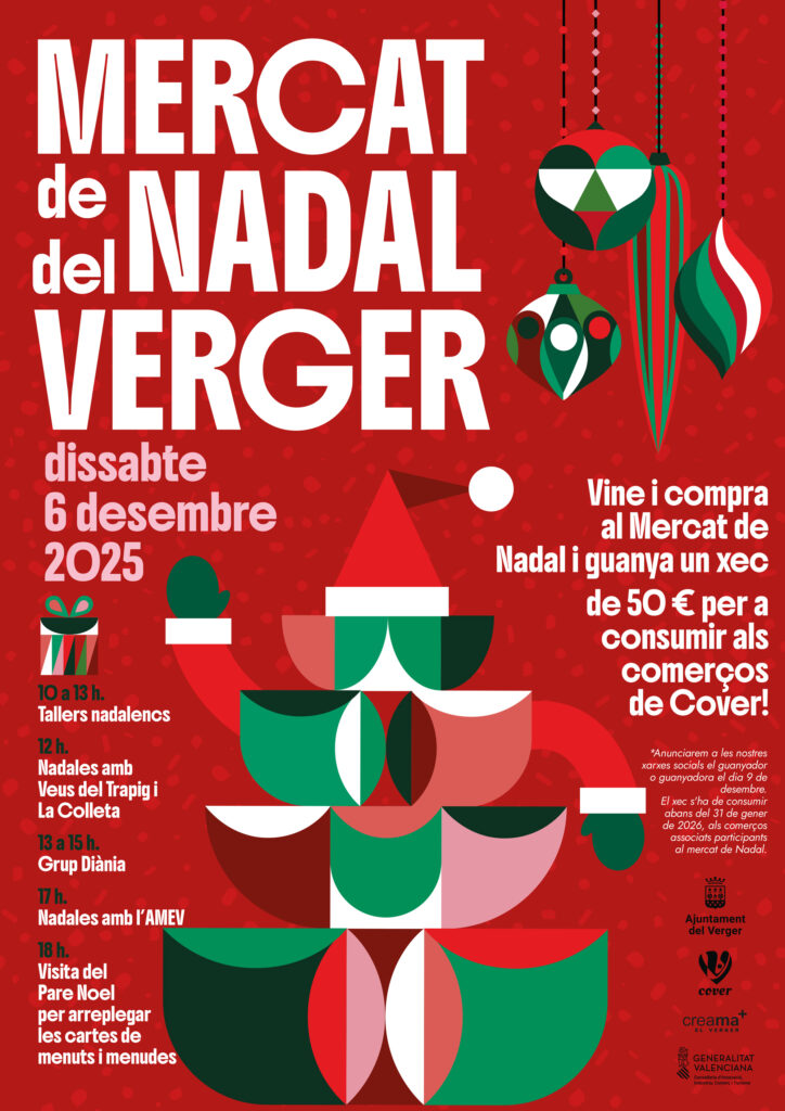 Organizado por el Ajuntament del Verger, COVER y Creama El Verger, este mercado navideño reúne a comercios locales, artesanos y asociaciones del municipio para ofrecer un día inolvidable donde tradición y comunidad se dan la mano.