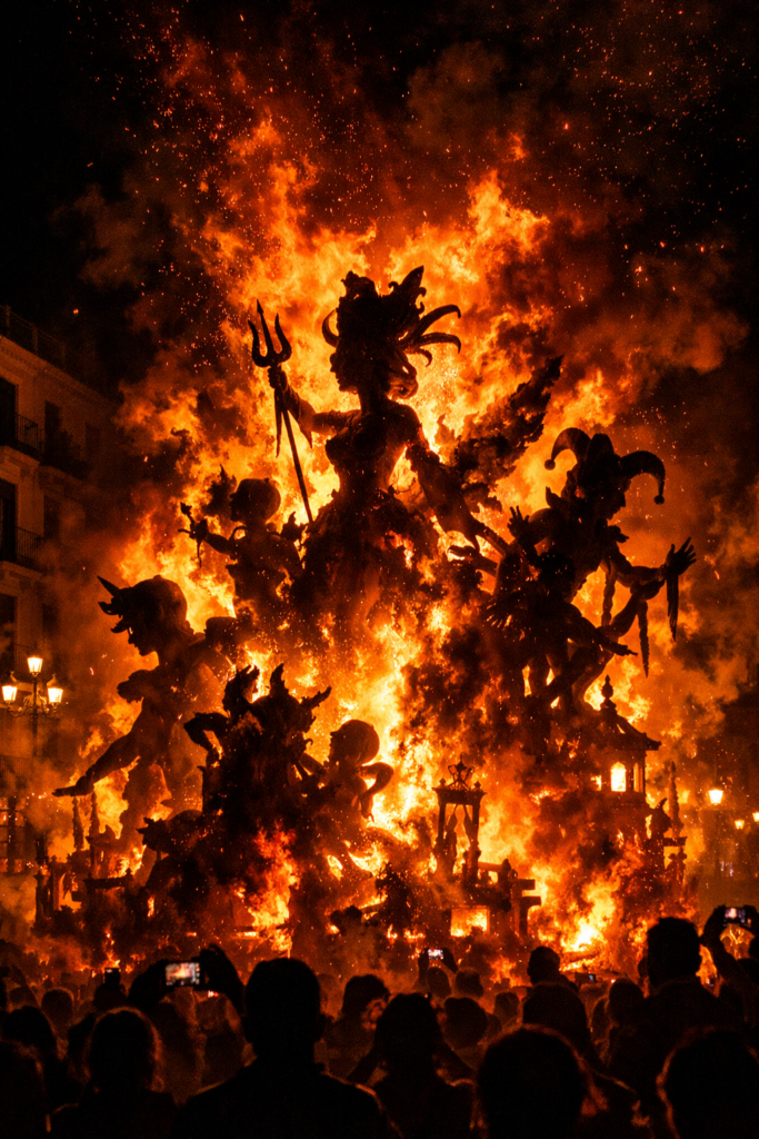 El 19 de marzo, día de San José, llega el momento más simbólico: la cremà. Las fallas arden y, con ellas, se despide un ciclo para dar paso al siguiente. Es un instante emocionante, donde el fuego no representa el final, sino el renacer.