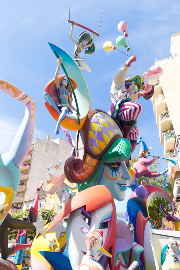 Uno de los grandes atractivos de las Fallas de Dénia es la calidad artística de sus monumentos. Cada comisión planta una falla grande y una infantil, llenas de detalles, escenas críticas y figuras que reflejan la actualidad con humor e ironía.